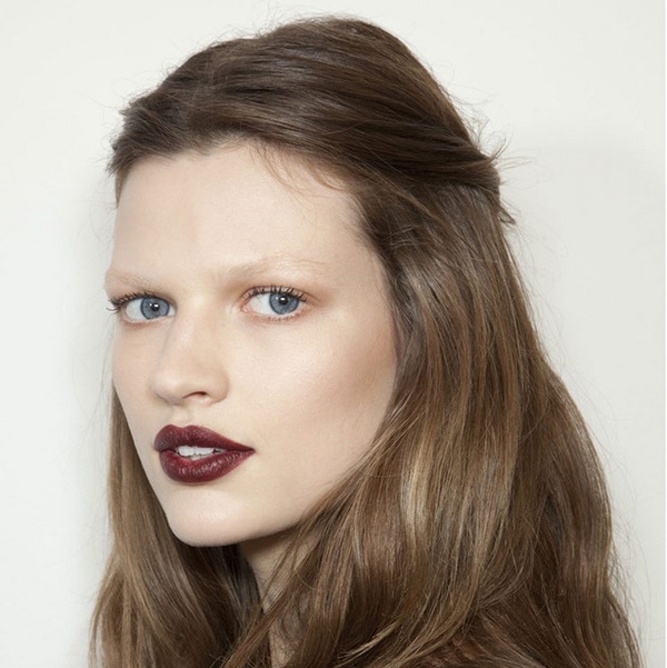 Los ojos contraste total: o bien smoky eye total, se lleva el efecto mascara maquillando todo el parpado móvil , pero también la línea de las pestañas inferiores, imprescindible iluminar el lagrimal, en metálico o mate, labios nude o, en cambio boca en un púrpura casi negro y ojos con solo máscara de pestañas.