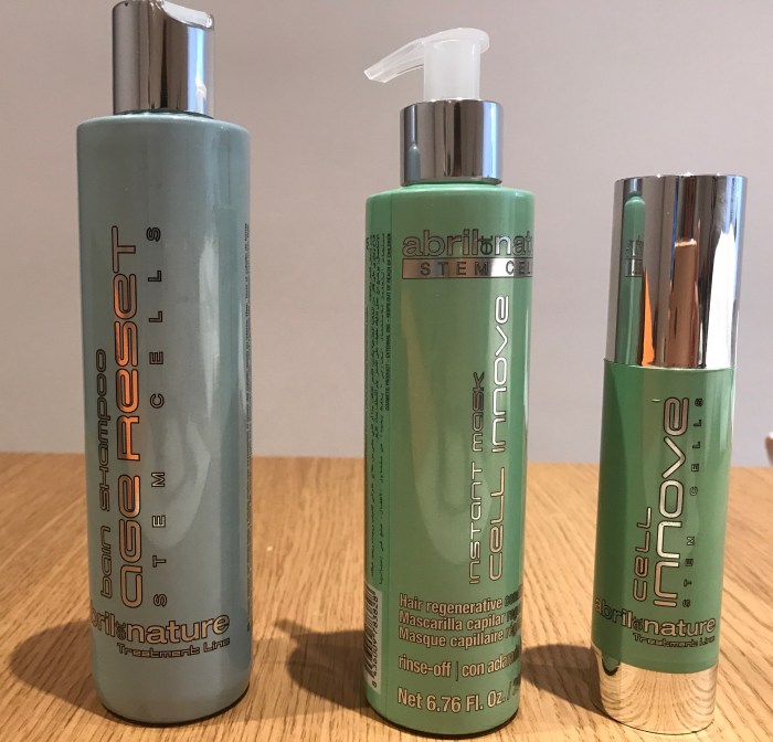 Marca de peluquería profesional con un montón de tratamientos para el cabello y cuero cabelludo. Abril et Nature tiene un tratamiento de Células madre con ingredientes bioactivos con capacidad de rejuvenecimiento capilar, activos biotecnológicos capaces de penetrar hasta el córtex, acción de renovación de la parte interna de la fibra y con efecto de reparación y alisado de la cutícula.